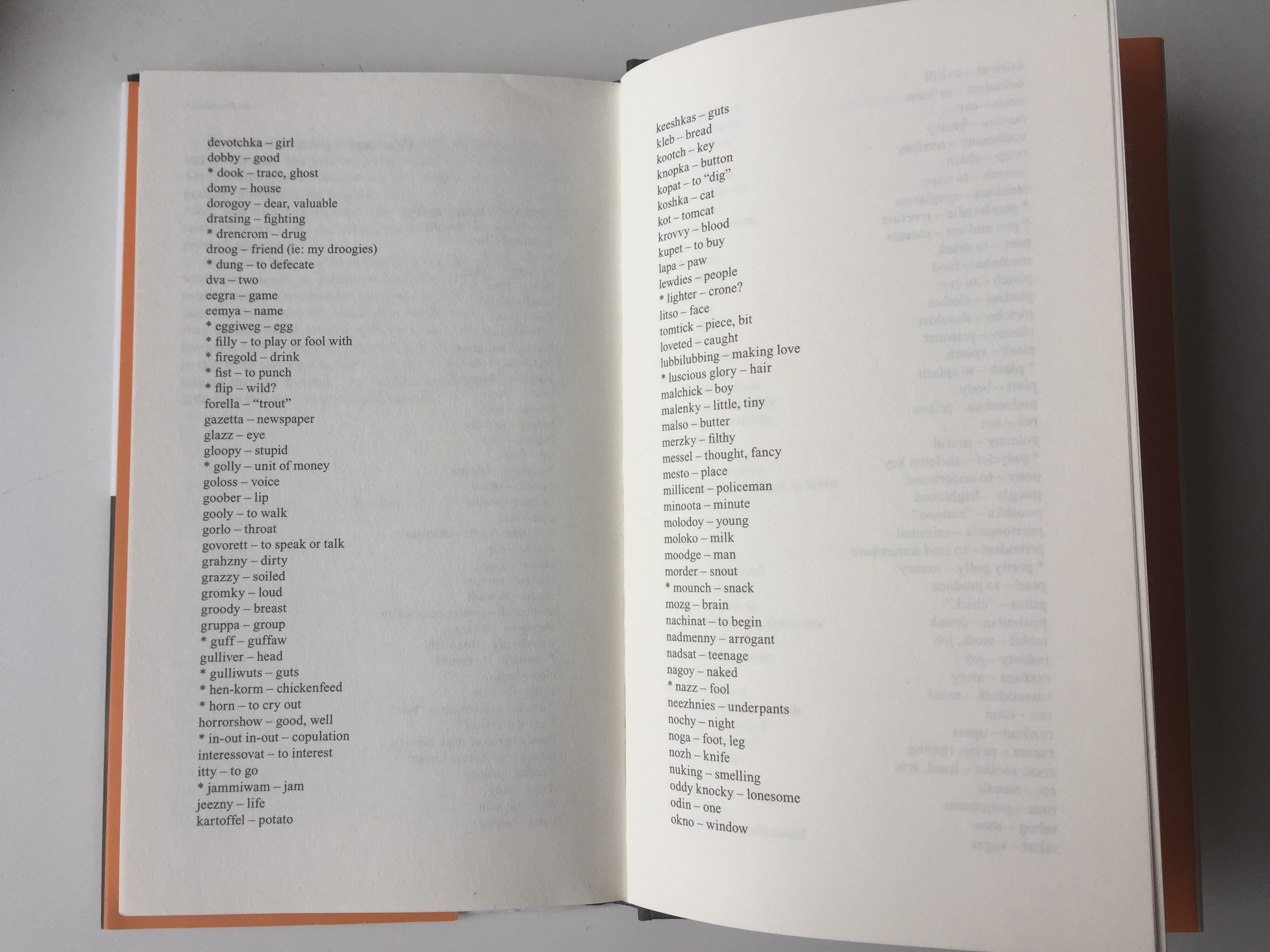 Likewise with Clockwork Orange. I always loved the glossary of terms at the back and this is what inspired me to get the other two books. Jargon translated.