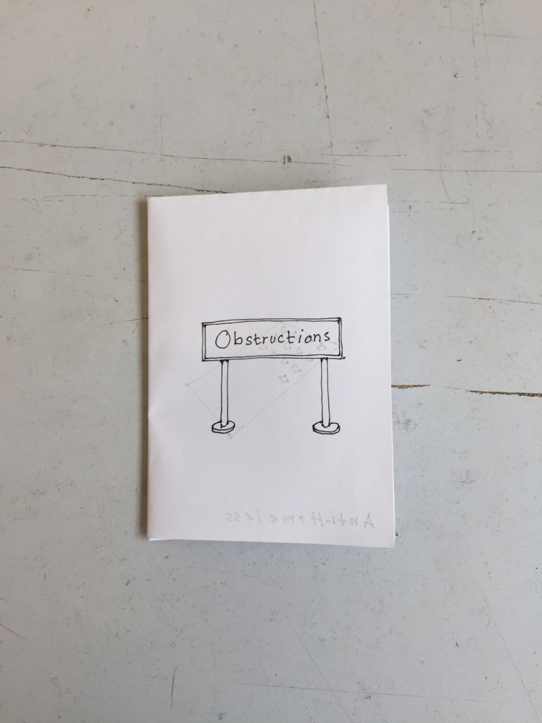 For the related piece I sketched out a quick zine of a collection of physical obstructions, something I’m about to experiment with.